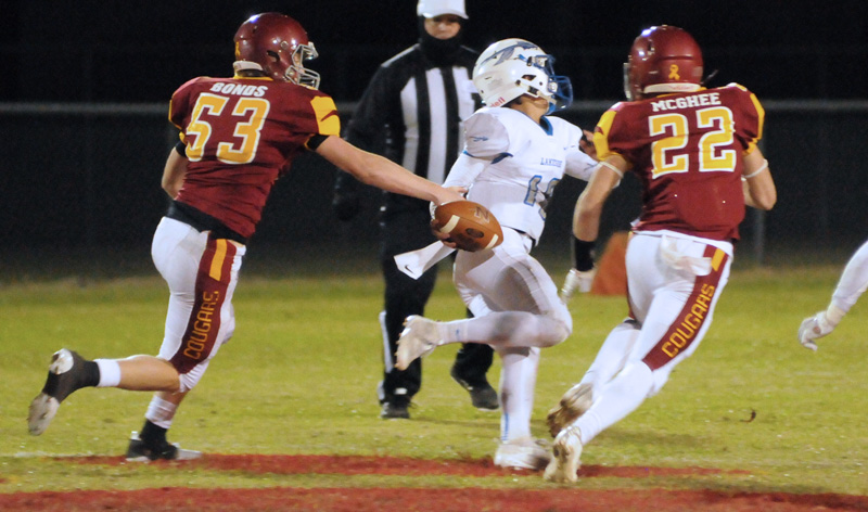 The Escambia Academy Cougars beat Lakeside School of Eufaula 49-0 in the AISA Class 2A quarterfinals Friday night in Canoe.
