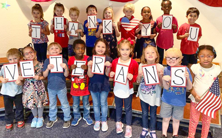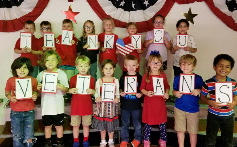 Pictured with a Veterans Day thank you are are kindergarten students at Beulah Elementary School.