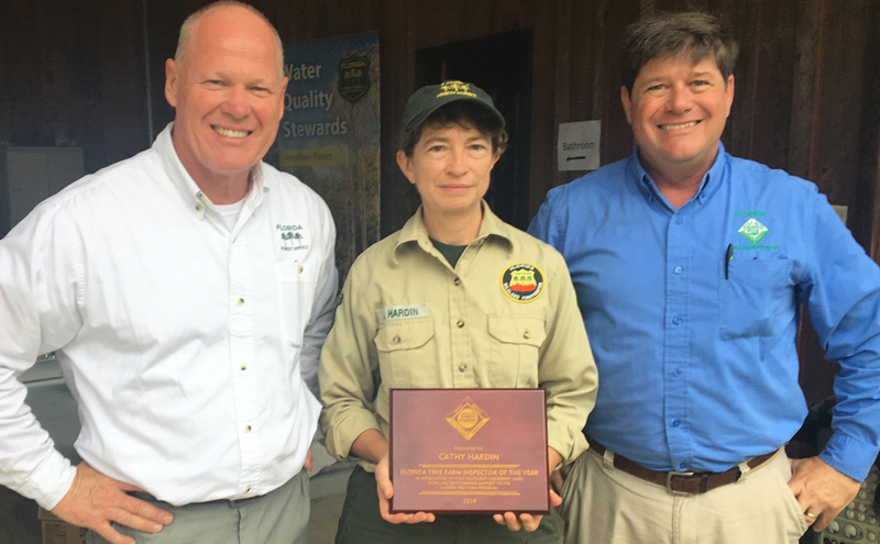 The Florida Forest Service’s Cathy Hardin, County Forester for Escambia County, was recognized as the Florida Tree Farm Inspector of the Year. This is Hardin’s second recognition, receiving, receiving the award in 2014 for her work in Gadsden County near Tallahassee.
