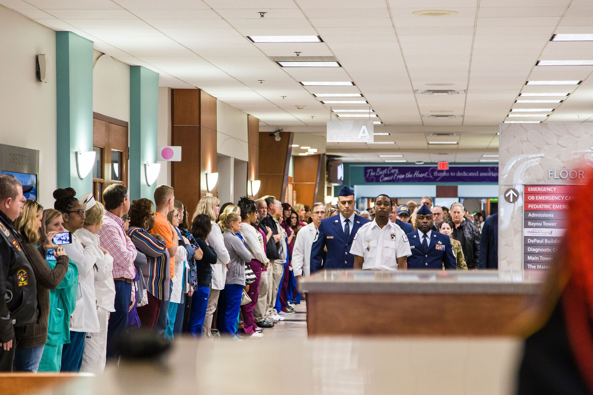 During the veteran’s walk, hospital staff and first responders lined the hallways to pay their respects to Bradshaw as his body was taken to Pensacola Memorial Gardens. The veteran’s walk is a final salute program offered by Sacred Heart Hospital to honor veterans.
