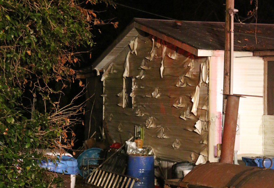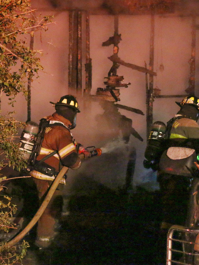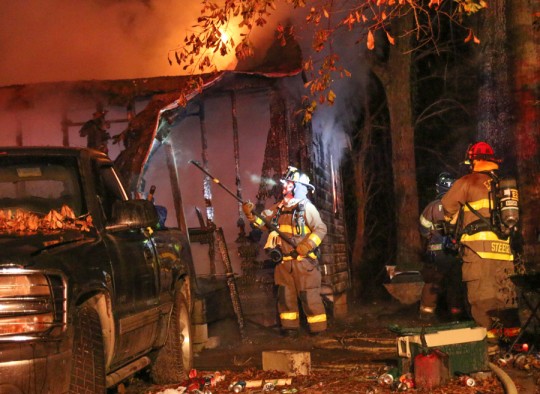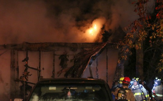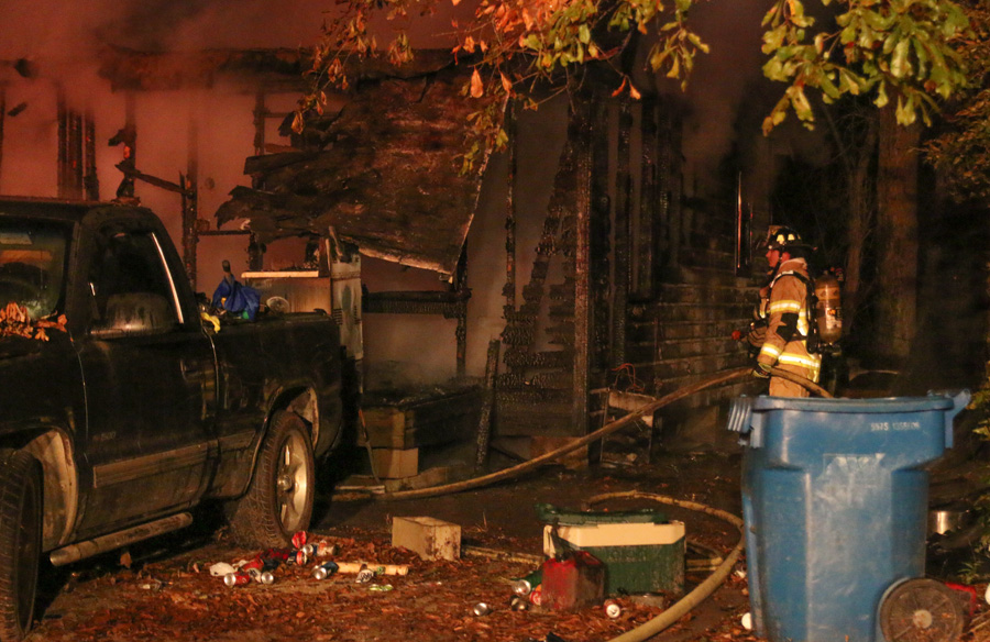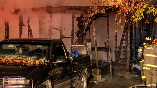The fire also damaged at least two vehicles and melted the vinyl siding on a nearby residence.