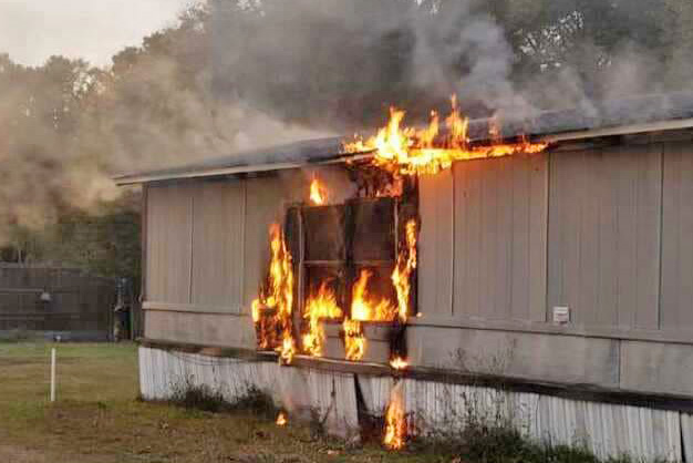 Pictured: A mobile home fire on Rebel Acres Lane in Beulah. NorthEscambia.com photo.