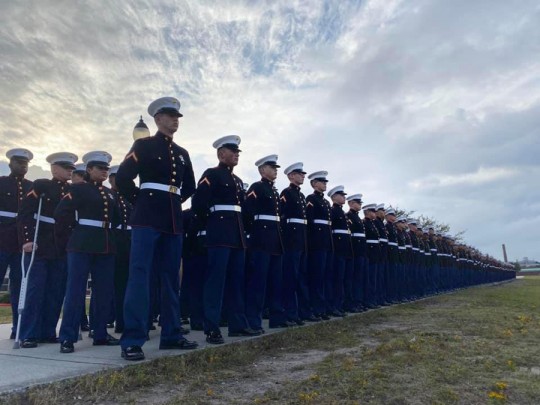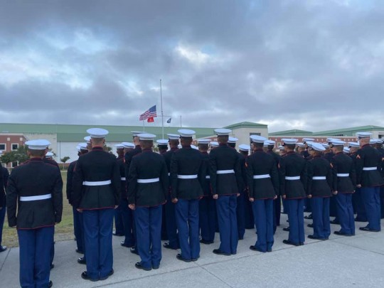 Over 400 marines and airmen stationed at NAS Pensacola showed their respects Saturday morning for the victims of the mass shooting Friday on the base.