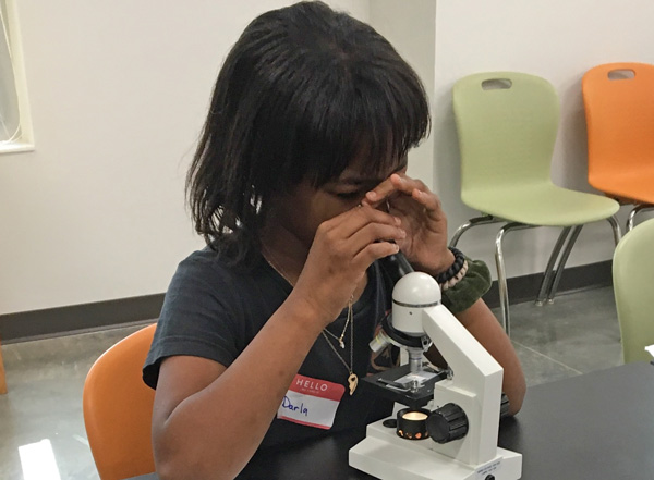Fifth grade students from Molino Park Elementary School visited the Roy Hyatt Environmental Center Tuesday. They entered the planetarium “blasting off” into space studying the solar system. They also used microscopes to study the flow of energy through an aquatic ecosystem observing a microscopic food chain in a drop of pond water. And they met Todd the Florida king snake. Photos for NorthEscambia.com, click to enlarge.