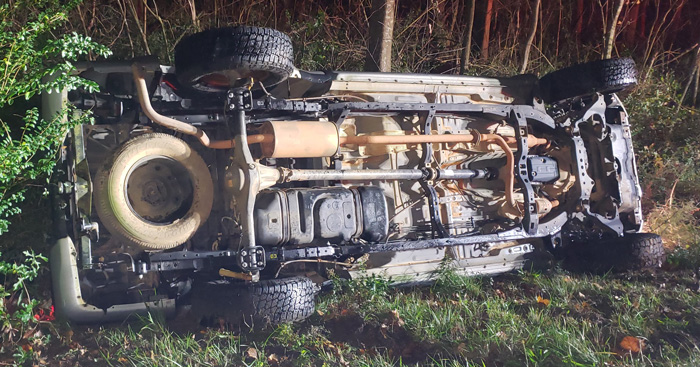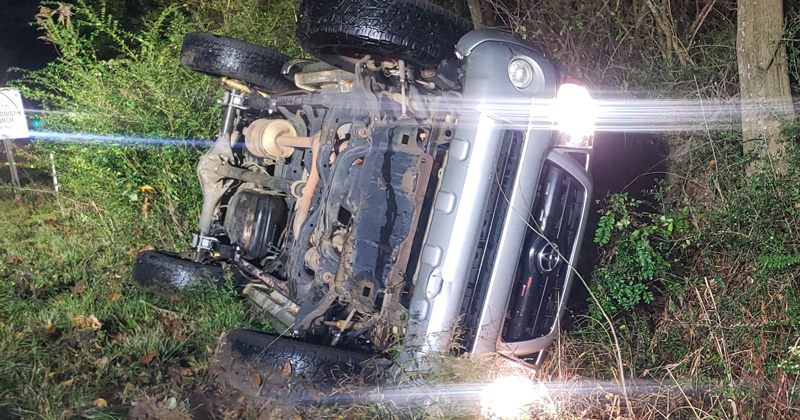On Highway 29 near 95A, a vehicle overturned into the woodline, but the driver was not seriously injured (pictured above and below).