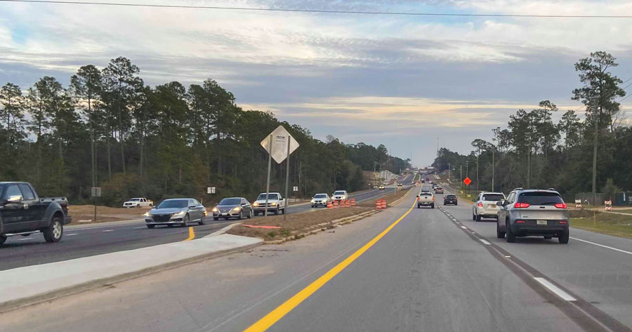 All four lanes of Nine Mile road between I-10 and Navy Federal Way opened to traffic on Friday. Work further west on Nine Mile Road will require westbound drivers in the outside lane to turn right at Navy Federal Way. NorthEscambia.com photos, click to enlarge.