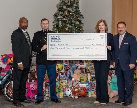 In addition to the Adopt-A-Family program, Navy Federal employees at the Greater Pensacola Operations campus gave back this holiday season through gathering more than 1,800 toys, including bikes and scooters, and donating $1,500 to the local Toys for Tots program in partnership with the United States Marine Corps Reserve.