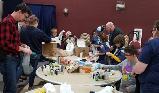 Cub Scout Pack 499 sponsored by Gonzalez United Methodist Church took part in the service project to collect socks, toothpaste, toothbrushes, deodorant and other small toiletries to go inside the socks to donate to the Waterfront Rescue Mission.