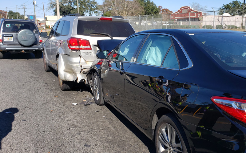 Two Injuries In Three Vehicle Crash At Nine Mile, Pine Forest