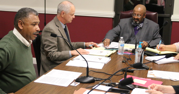 Pictured top: Democratic candidate for Escambia County Sheriff David Alexander (far left) introduces himself to the Century Town Council Monday night. NorthEscambia.com photo, click to enlarge.