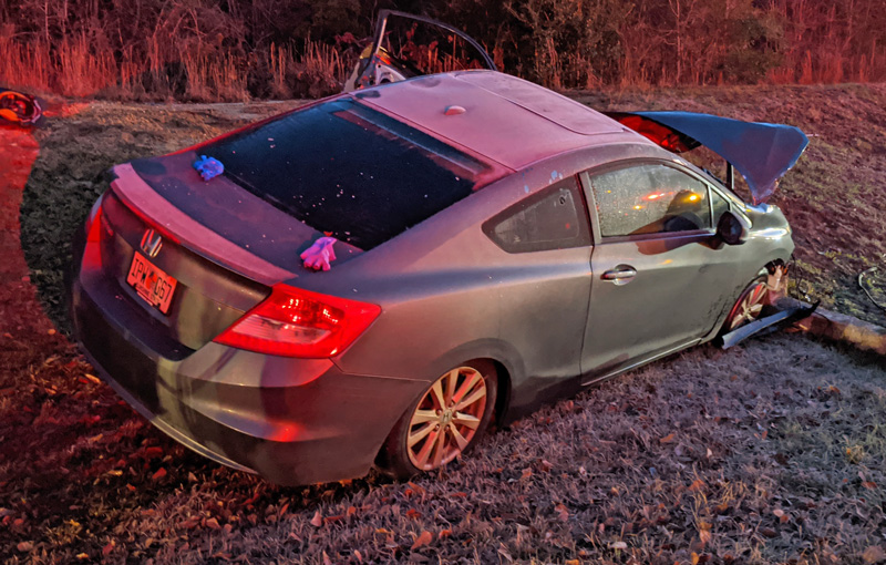 Morgan was extricated from the car using the Jaws of Life and airlifted by LifeFlight helicopter to Sacred Heart Hospital. Parker was not injured.