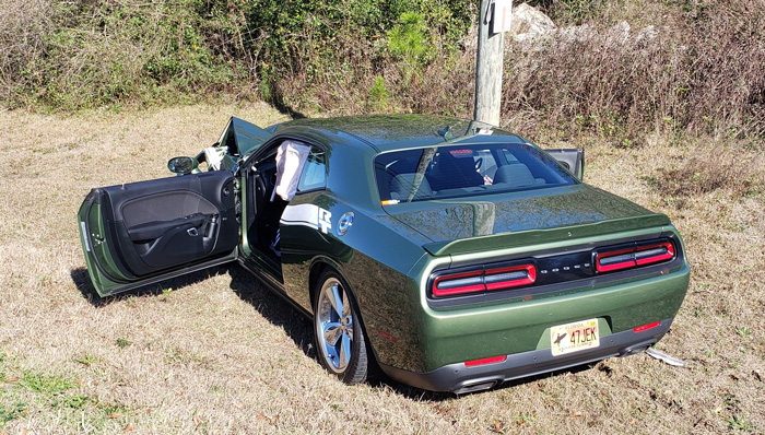 I came through there at 9:00pm last night 8 hours later from the time of the wreck a wrecker was picking up the green dodge challenger from the site along with a Florida Highway Patrol car off to the side.
