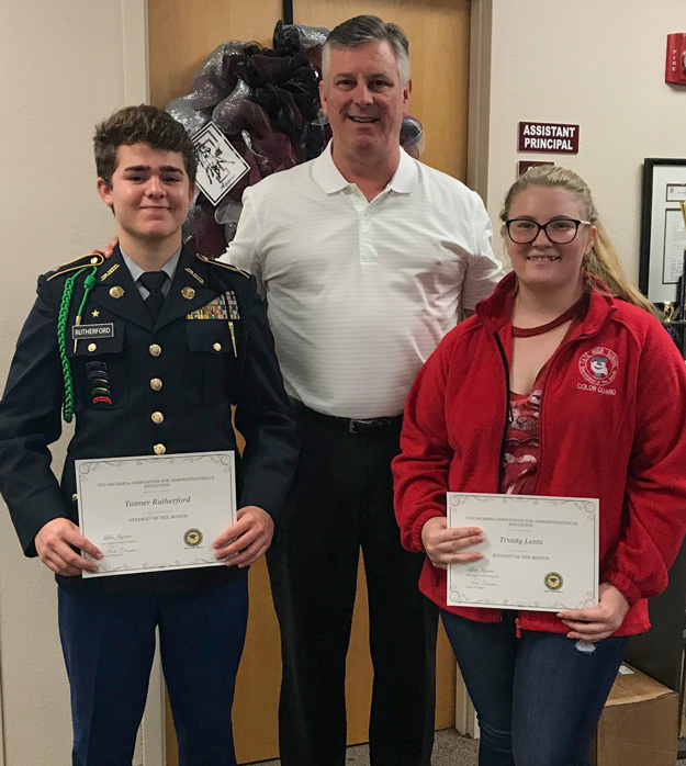 Tate High School has named students of the month. They are Tanner Rutherford and Trinity Lentz, pictured with Principal Rick Shackle. Photo for NorthEscambia.com, click to enlarge.