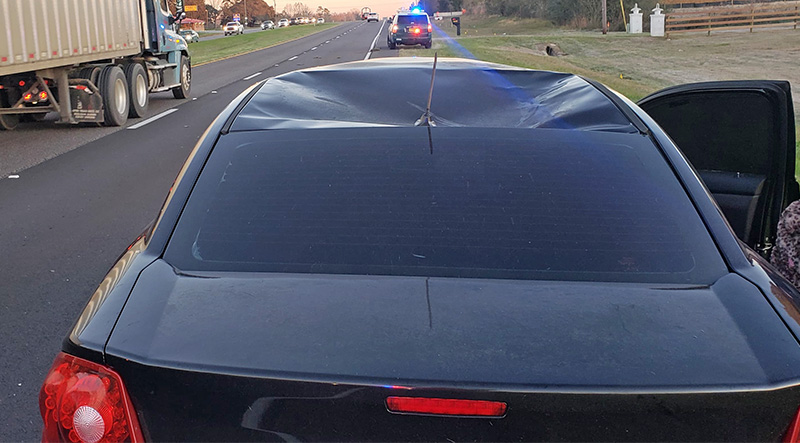 The Florida Highway Patrol said 50-year old Katie Dailey of Atmore first struck the horse with her Dodge Avenger. The horse toppled over the car and landed in the inside lane of Highway 29. John Yuhasz, age 31 of Molino, then struck the horse with his Ford F150.