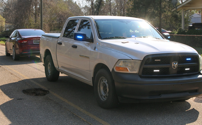 Pictured: An officer stands by with a vehicle reportedly driven by a woman that resisted officers Friday afternoon. NorthEscambia.com photo, click to enlarge.