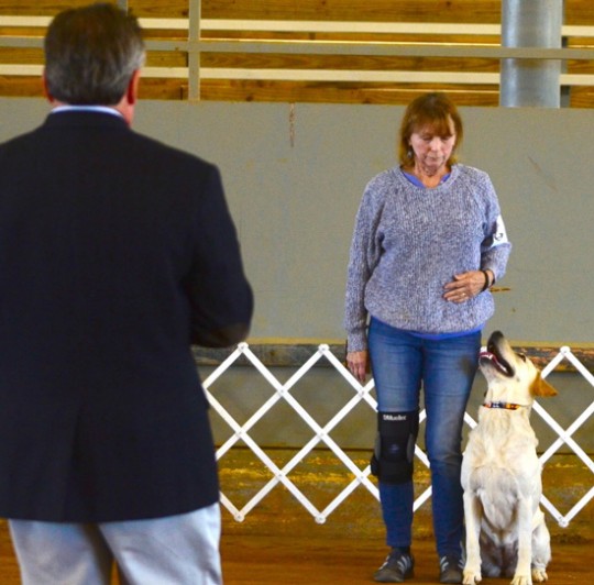Pictured top: Debbie Petty of Cantonment, one of the top obedience title holders in Northwest Florida, shows her Labrador Retriever “Breeze” in 2019. File photo for NorthEscambia.com, click to enlarge.