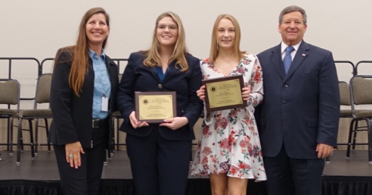 A certificate for outstanding research in psychology is awarded to the team of Bailey Bullion & Jenna