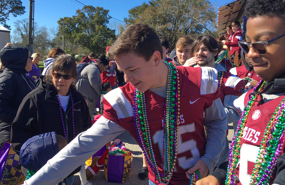 With plenty of beads, Moon Pies, stuffed animals and smiles, the parade rolled through the school parking lot for students that might not otherwise be able to attend a regular Mardi Gras parade.