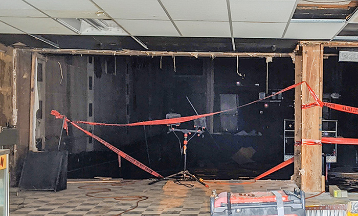 In recent days, the needed demolition work on the theater has started, with interior walls separating the lobby and the main theater removed, and even the old silver screen is down.