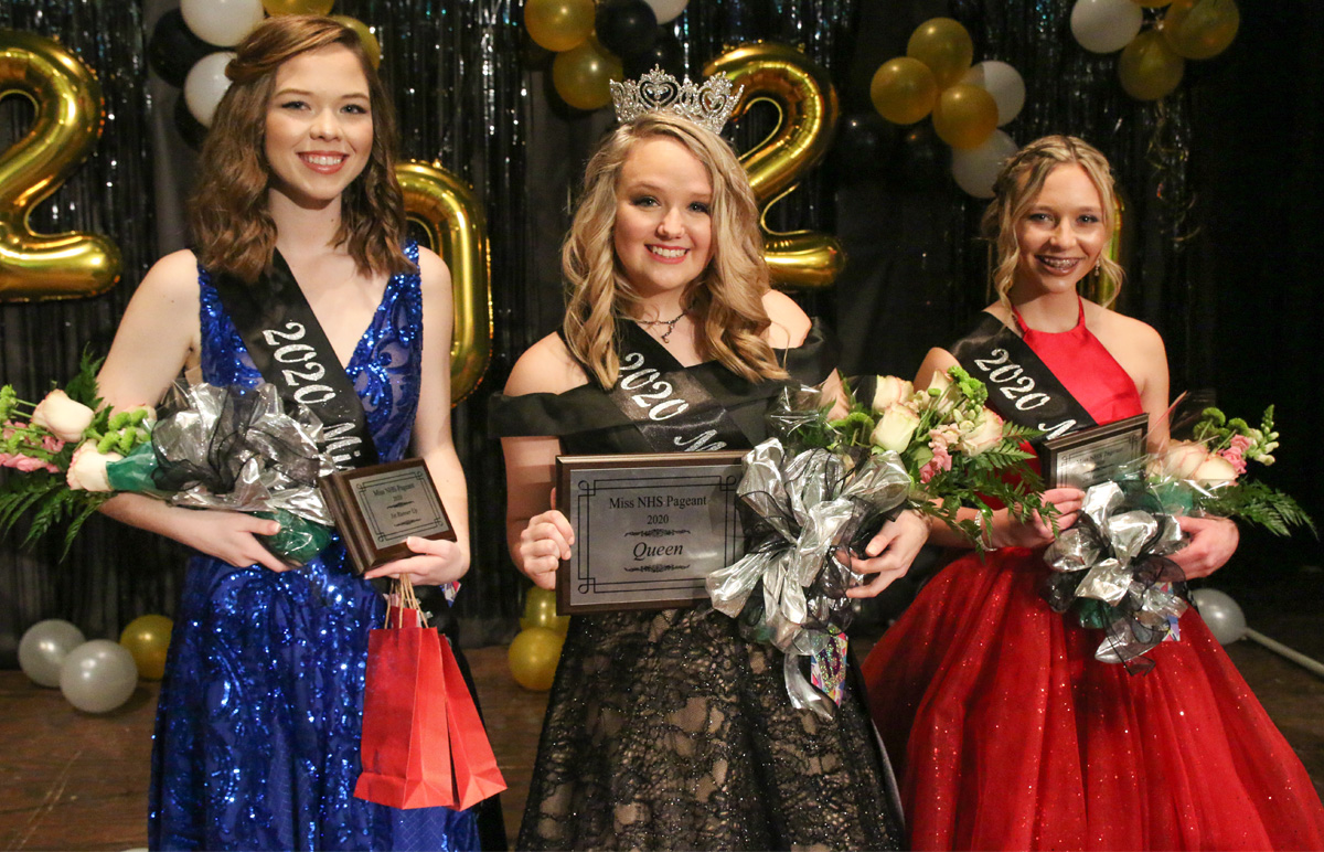 Pictured top: Miss NHS 2020 Cloe Smith. Pictured below: First runner-up Amber Gilman, Miss NHS Cloe Smith and second runner-up Taylor Levins. NorthEscambia.com photos, click to enlarge.