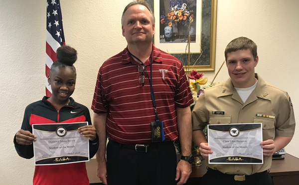Northview High School has named Students of the Month for February. They are Diamond Jaleea Brown and Chase Eben Hampton, pictured above with Principal Michael Sherrill. Photo for NorthEscambia.com, click to enlarge.