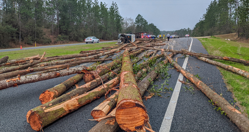 Log jam on Escambia River and now a log jam on Hwy 29. Will it never end.