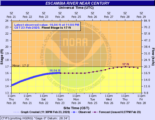 The National Weather Service in Mobile has issued a flood warning for the Escambia River near Century beginning late Thursday night.