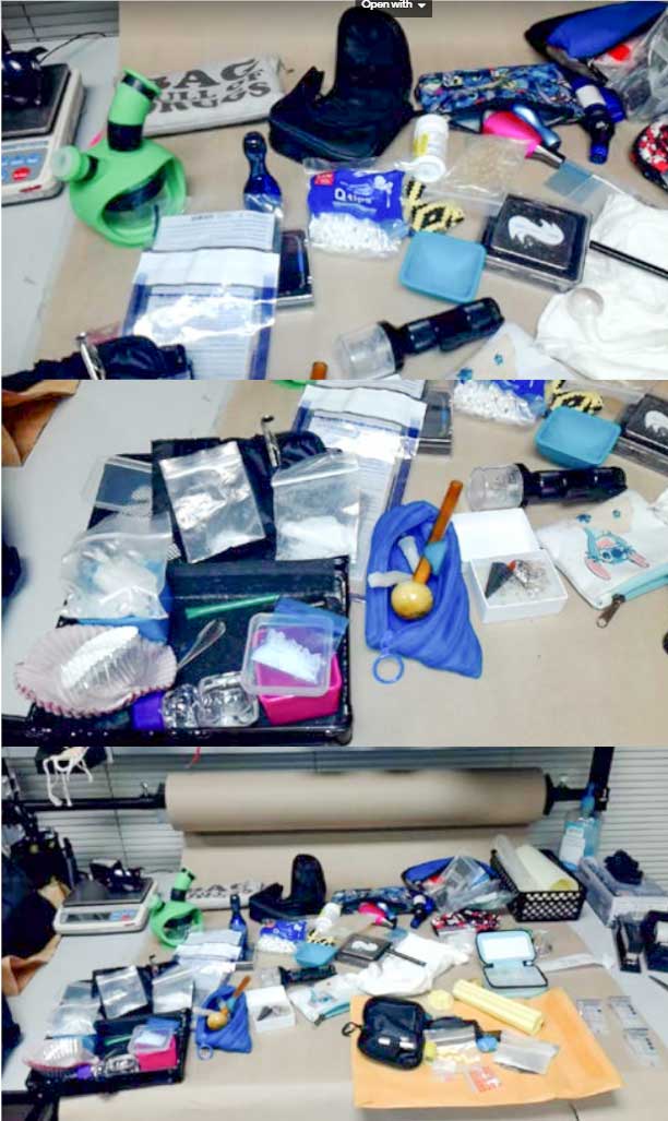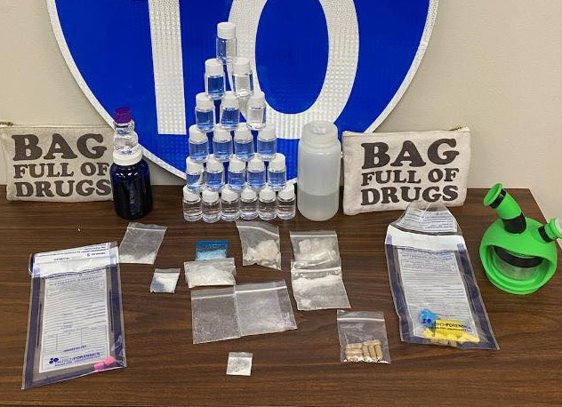 The SRSO assisted in the search of the vehicle, with K-9 Prince alerting to contraband in the Kia. A search of the vehicle found approximately 75 grams of methamphetamine, 1.36 kilograms of GHB, one gram of cocaine, 3.6 grams of fentanyl, 15 MDMA tablets and drug paraphernalia.
