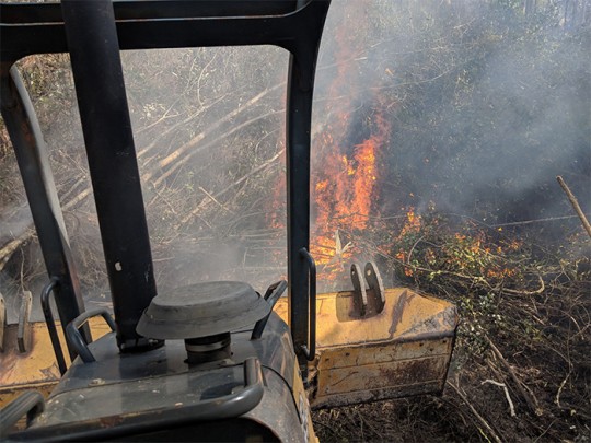 Flomaton Fire Chief Stanton offered his thanks to a local resident that allowed the use of his bulldozer to help fight the fire (pictured below.