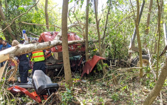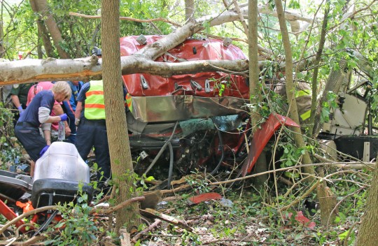 We came thru there right after life flight left. Horrific scene. Took 3 tow trucks to get truck out. Could barely tell it was a semi. He must have been going very fast.