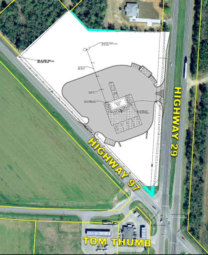DGS Holdings of Atmore’s plans to build the store on an 8.22 acre parcel (pictured) directly across Highway 97 from the current Tom Thumb. In late 2017, plans were submitted to Escambia County by Diamond Gasoline of Atmore for a convenience store on the property, but that project was not completed.