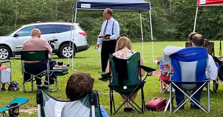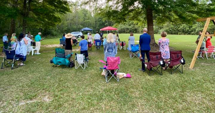 At Grace Valley Baptist Church in Cantonment, the Sunday morning services were held outside with family groups socially distanced from each other.