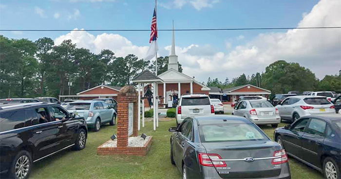 Several churches, including Little Escambia Baptist Church in Flomaton and Atmore First Assembly of God, are holding drive-in church. Much like an old-fashioned drive-in movie, the congregation pulls into the parking lot to hear the Gospel while staying socially distanced.