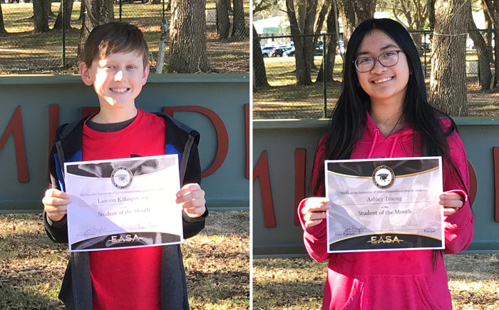 Ransom Middle School has named Students of the Month for February. They are Lawson Killingsworth (pictured left) and Ashley Truong. Photos for NorthEscambia.com, click to enlarge.