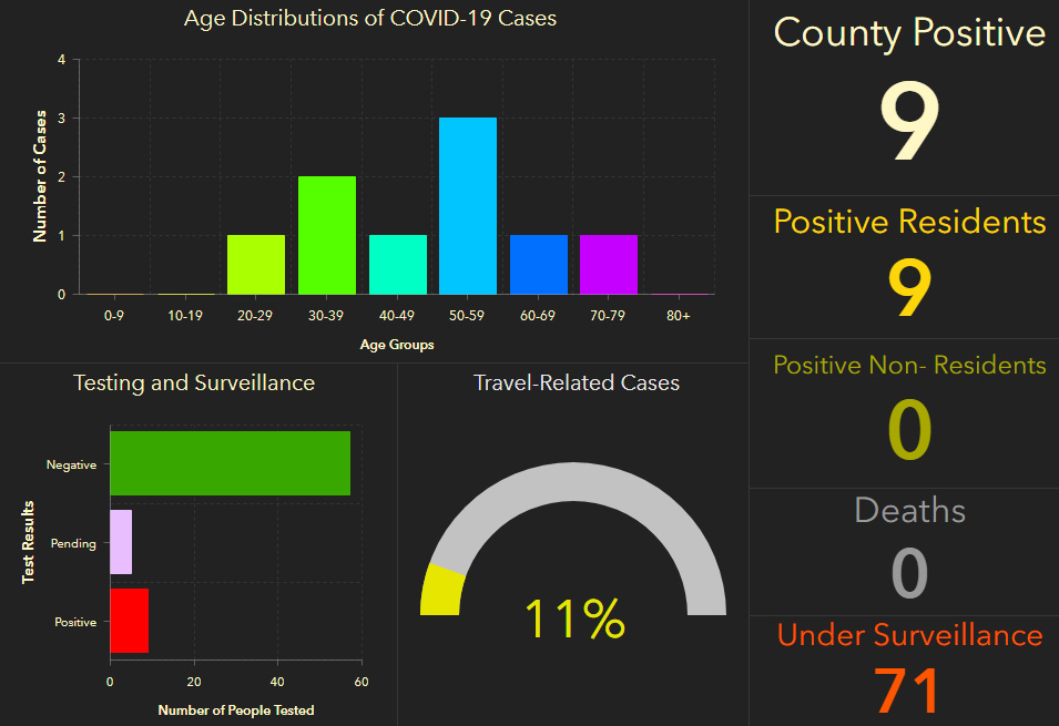 The age of those diagnosed in Escambia County ranges from 25 to 76. One case is travel related, three are not related to travel, and the travel is unknown for five individuals. None of the nine Escambia County patients are currently in the hospital; they are all self-isolated.