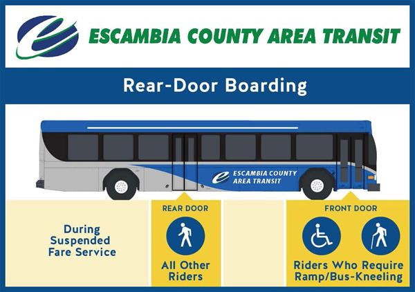 Escambia County Mass Transit Director Tonya Ellis stated, “In continuing service during this state of emergency, our priority remains the safety and health of our employees and passengers. By eliminating close interactions at bus fareboxes, we can better implement social distancing by avoiding interaction in this high contact area.”