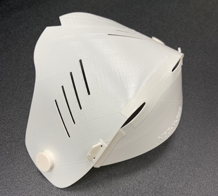 While the initial version worked well enough, the testers reported back several flaws. The tabs that kept the shield in place had a tendency to break off, so the team thickened the tabs and narrowed the slots they fit into on the chin piece. They also eliminated the elastic strap and created a plastic nub where the band of the N95 mask could fit, making the shields easier for workers in gloves to get on and off.