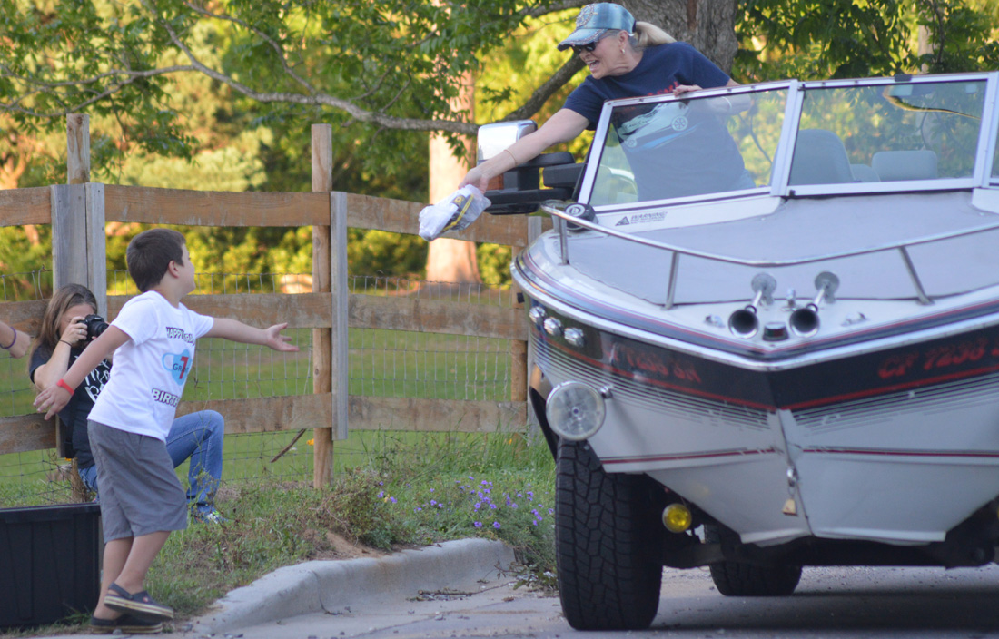 Instead, the community came together to give Grant, who was wearing his own personalized “Happy Quarantined Birthday” shirt, a rolling birthday parade to remember.