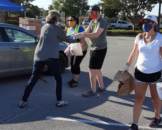 The Ministry Village at Olive Baptist Church distributed over 30,000 pounds of free food to those in need Saturday. Over 85 volunteers, wearing masks and gloves, helped to sort and pack the food items for the distribution. They packed over 1,200 bags in 2.5 hours.