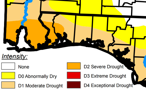 All but the extreme northern part of Escambia County is in the severe drought category.