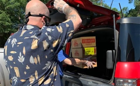 Pictured: Last Saturday, Gonzalez Baptist Church distribute food boxes, and they will do it again this Saturday. Photos for NorthEscambia.com click to enlarge.