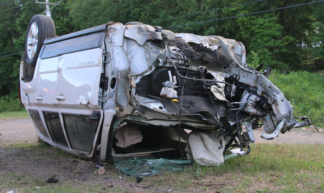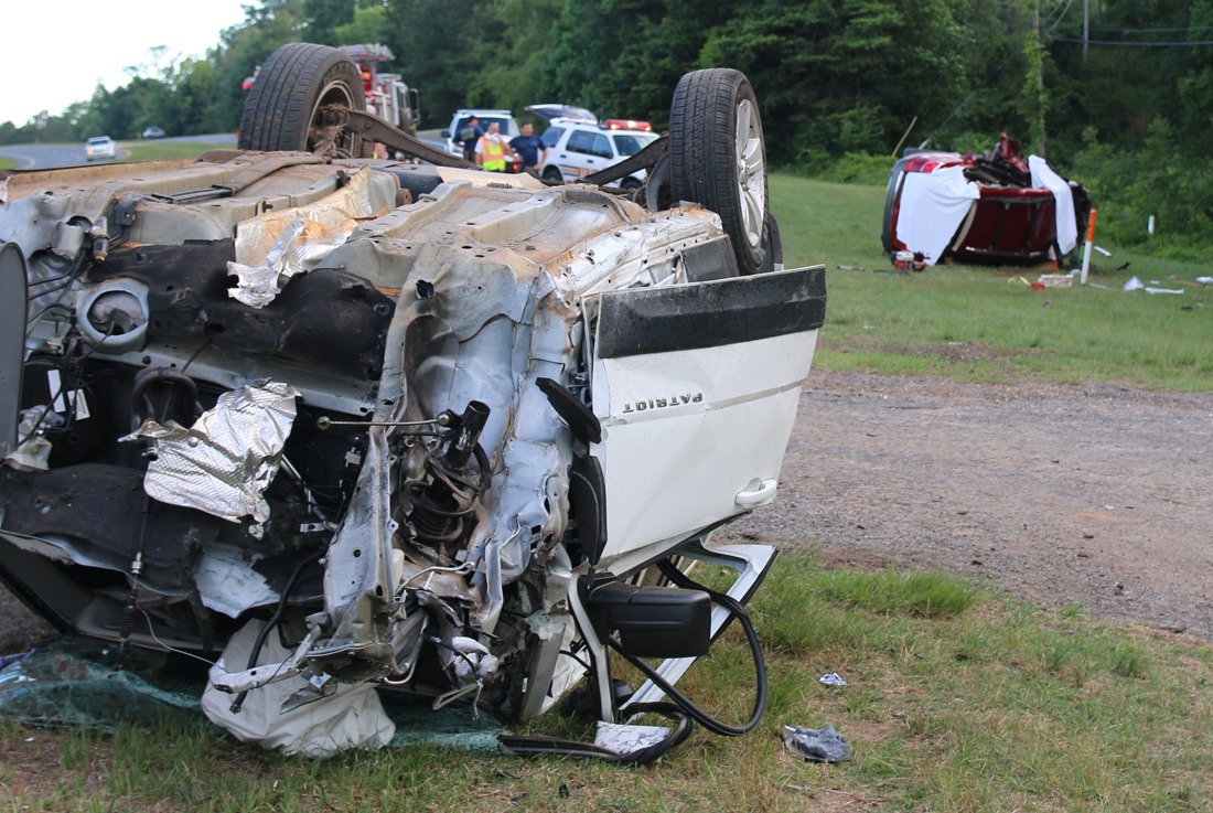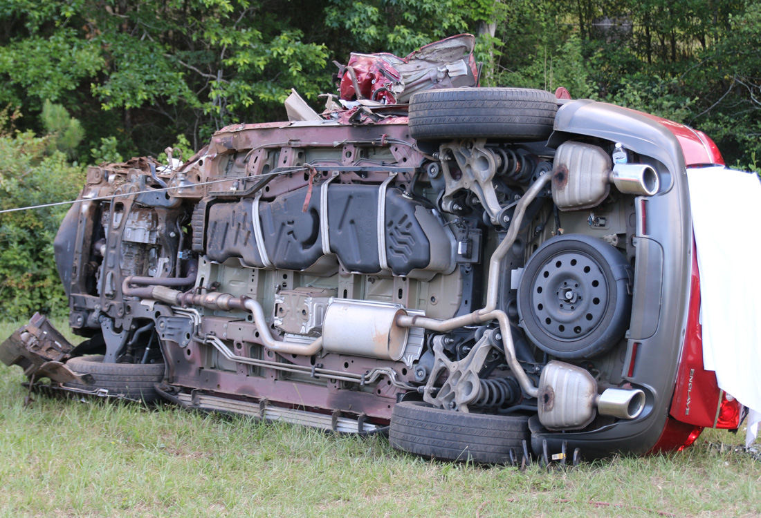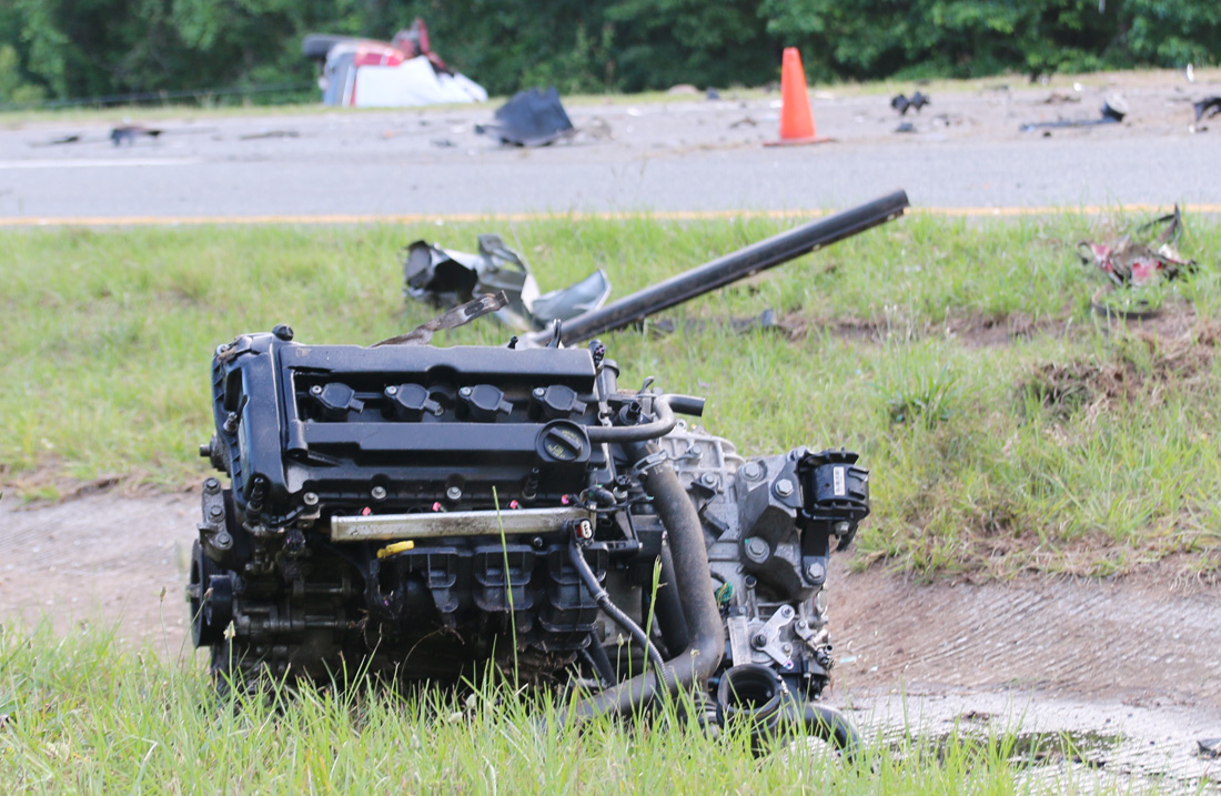 The collision essentially exploded the front of the Jeep, leaving the front wheels, engine compartment and engine in the median and debris spread across a large area of southbound Highway 29. The remainder of the Jeep came to rest upside down on the shoulder of the southbound lanes.