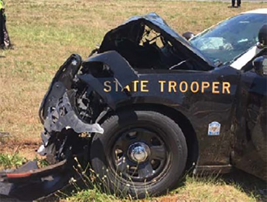 Everyone here seems more worried about the cars in the pi tures… all I care about is the Troppers getting well. Not knocking the other commentators but it doesn’t matter what vehicles are involved. Human life could of been list over this idiot…we can replace torn up vehicles but their families could never replace them. Just my thoughts here