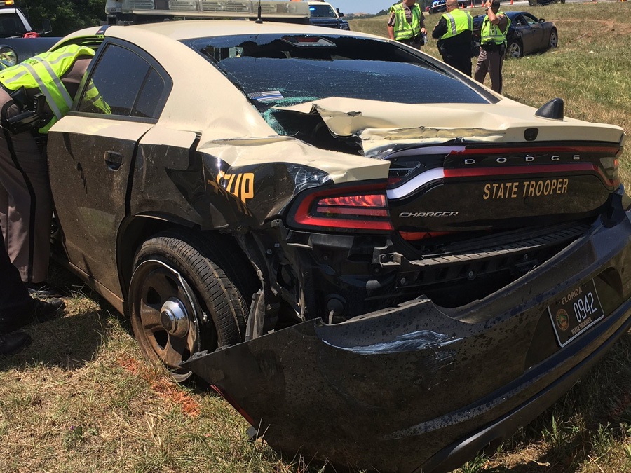 The pictures show TWO FHP vehicles. One photo of an unmarked trooper car and two photos of one marked vehicle.