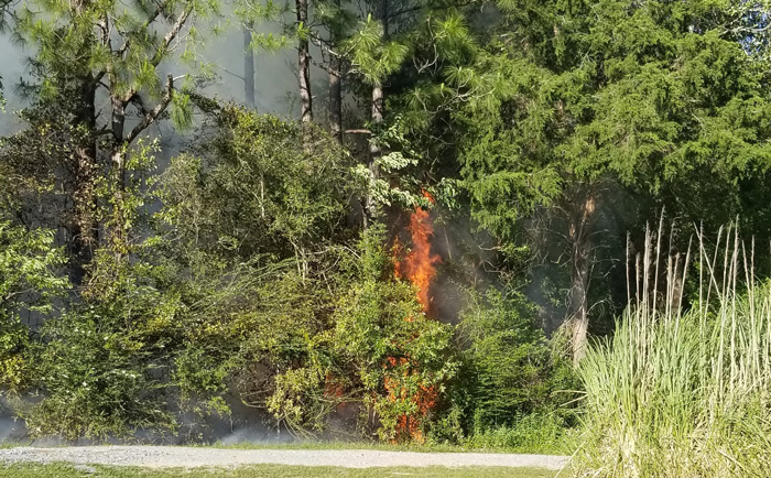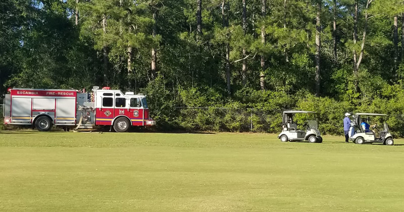 The Cantonment Station of Escambia Fire Rescue responded to a small woods fire near the second hole at the Cypress Lakes Golf Club on Old Chemstrand Road late Thursday afternoon. Photos by Jason Cawby for NorthEscambia.com, click to enlarge.