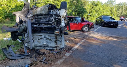 The Florida Highway Patrol said the 65-year old male driver of a SUV was traveling south on Jacks Branch Road when he veered into the northbound lane and struck a passenger car head-on. The SUV came to rest upside on it roof.