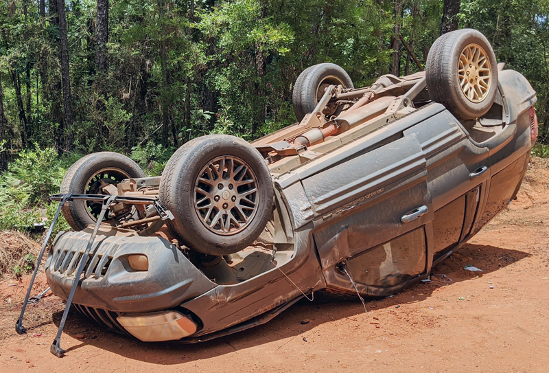 She lost control of her Jeep Grand Cherokee while southbound on South Pineville Road just over a mile south of Arthur Brown Road. The vehicle flipped, coming to rest upside down on the roadway. She was not injured.