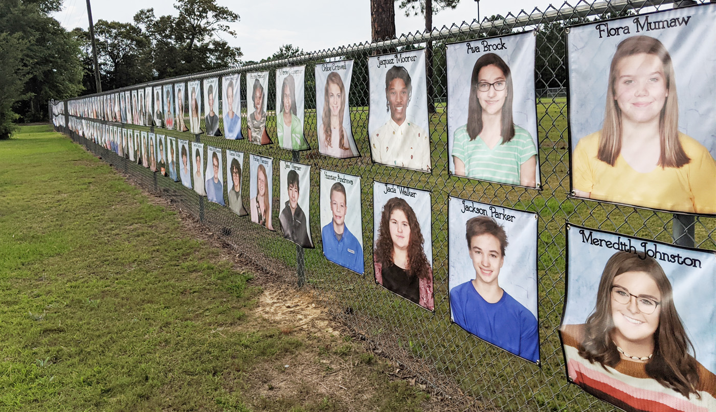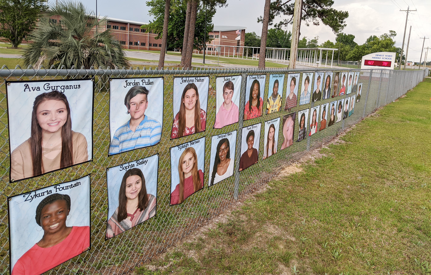 Ernest Ward Middle School honored their graduating eighth grade class by lining the school fence with banners featuring a photo of each student. The students did not return to school following spring break due to the coronavirus.