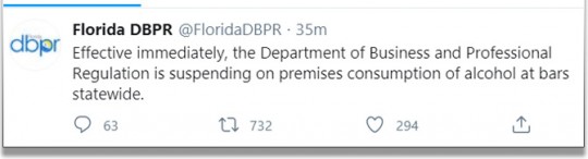 16 Responses to “Florida Suspends On Premise Consumption Of Alcohol At Bars Statewide”
