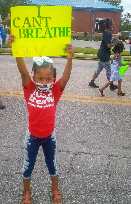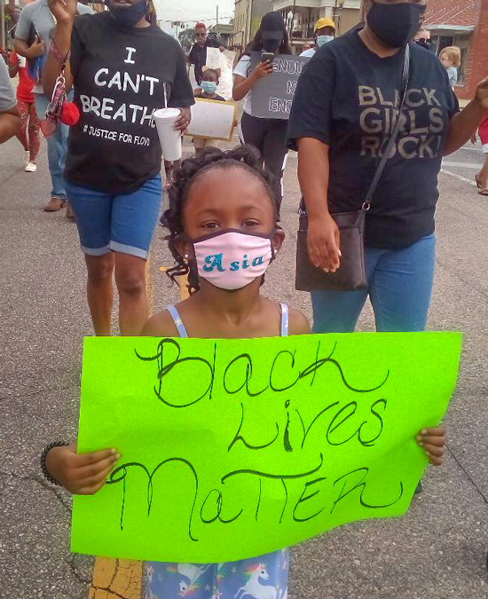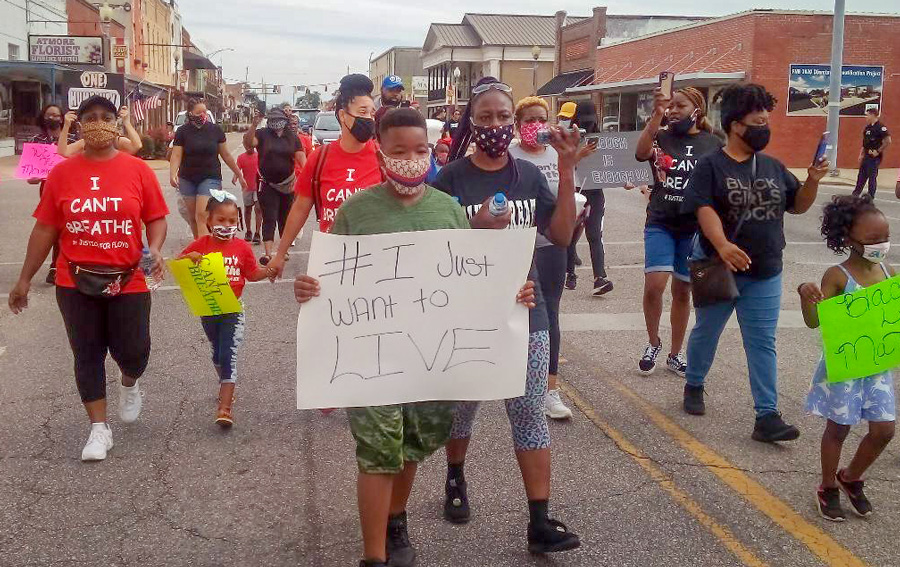 The chants from a peaceful march echoed off the old hardware on Main Street in downtown Atmore Saturday morning.
